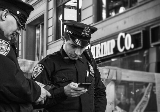 Andy Bates talks with Rev. David Ficken, chaplain for the Portage County Sheriff Office and the Plover Police Department.